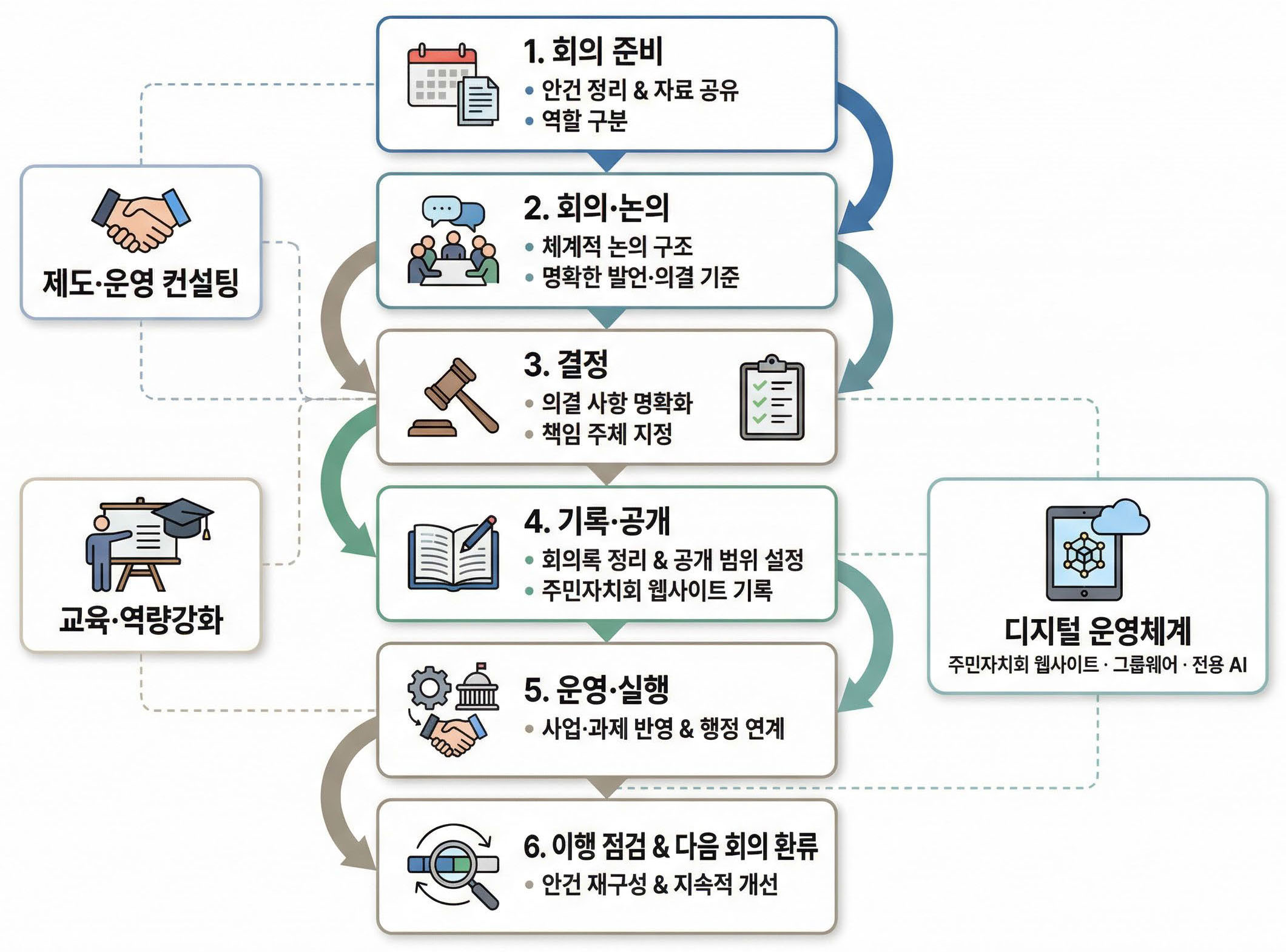 °ø°¨ÄÄÆÛ´Ï´Â ÁÖ¹ÎÀÚġȸ¸¦ ´ÜÀÏ »ç¾÷À̳ª ±³À°À¸·Î º¸Áö ¾Ê½À´Ï´Ù.ȸÀÇ¡¤°áÁ¤¡¤±â·ÏÀÌ À̾îÁö´Â ¿î¿µÀÇ ±âÁØÀ» ¸¸µé°í, ±× ±âÁØÀÌ ÇöÀå¿¡¼ ÀÛµ¿Çϵµ·Ï ÄÁ¼³ÆÃ¡¤±³À°¡¤µðÁöÅÐÀ» ÇÔ²² ±¸ÃàÇÕ´Ï´Ù.